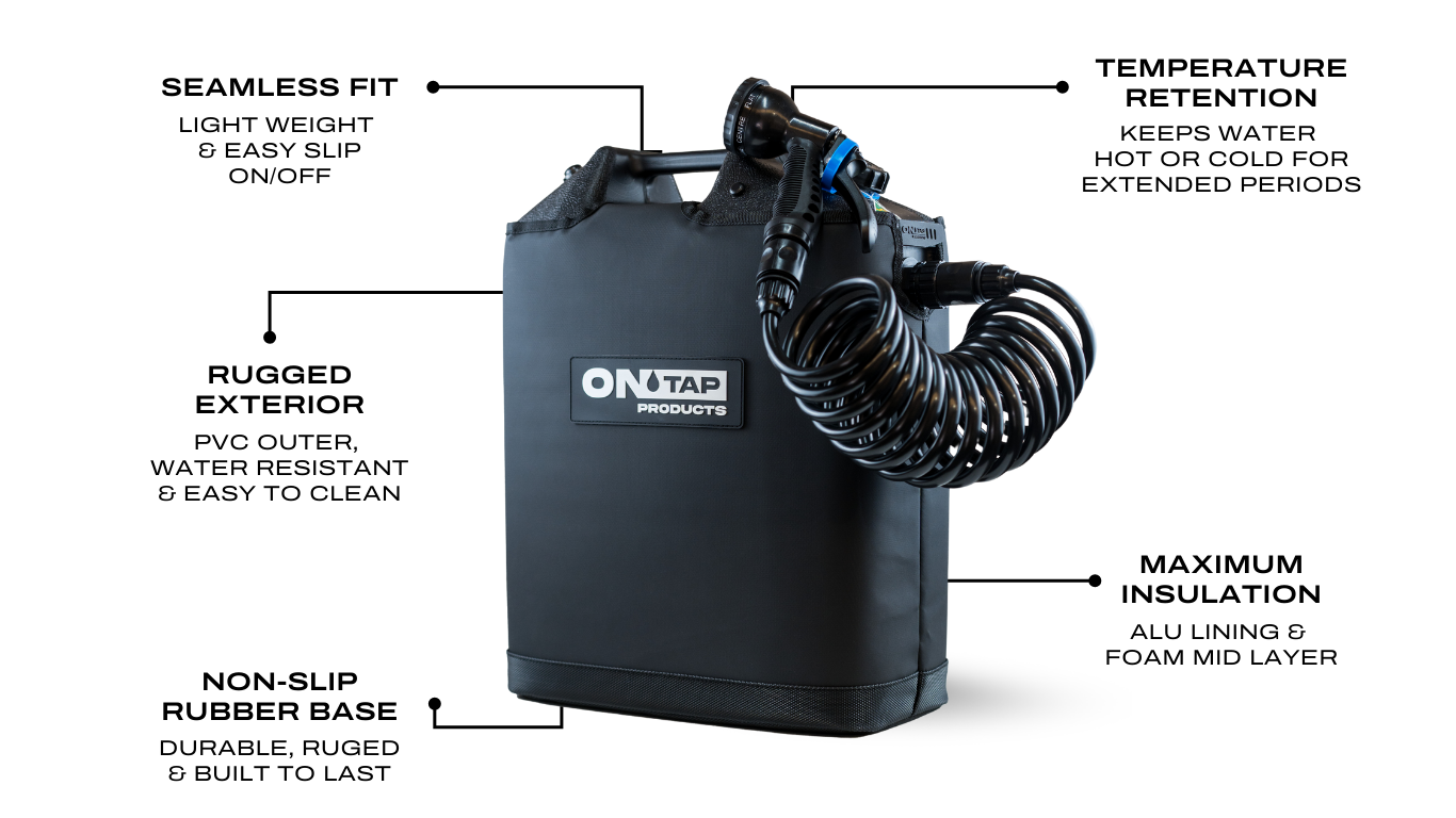 Designed for the ONTAP Portable Shower, this high quality insulated cover keeps your water hot or cold for longer—perfect for rinsing off after a surf or freshening up at camp.